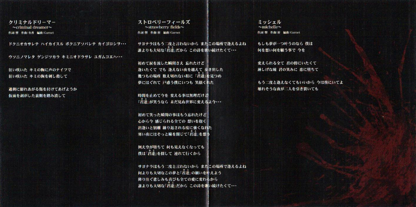 1. クリミナルドリーマー~Criminal Dreamer~ 2. ストロベリーフィールズ~Strawberry Fields~ 3. ミッシェル~Michelle~ |