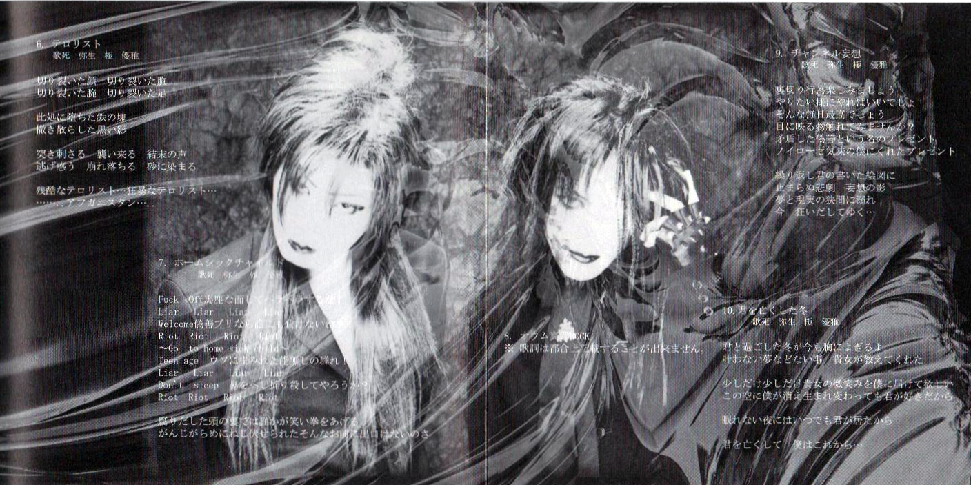 1. SE~弥生優雅行進曲~ (Yayoi yuuga koushinkyoku) 2. 禁じられた遊び (Kinjireta Asobi) 3. BLACK LIST007 4. 悩殺 (Nousatsu) 5. ノータリン (Notarin) 6. テロリスト (Terrorist) 7. ホームシックチャイルド (Homesick Child) 8. オウム真○ROCK (Oumu shin O ROCK) 9. チャンネル妄想 (Channel Mousou) 10. 君を亡くした冬 (Kimi o nakushi ta fuyu) |