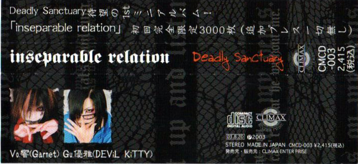 inseparable Relation CD (mini-album) Release date: 2003.09.06 |