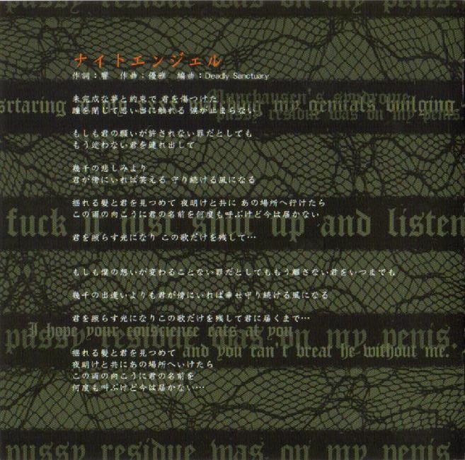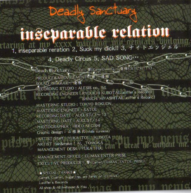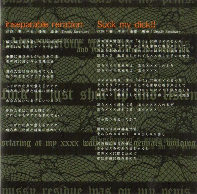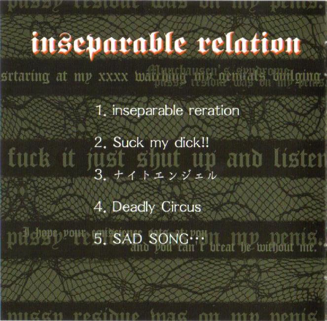 1. inseparable relation 2. Suck my dick!! 3. ナイトエンジェル (Night Angel) 4. Deadly Circus 5. SAD SONG... |