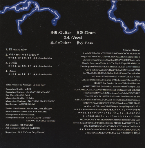 1. SE -fairy tale- 2. ガラス細工の君と僕の声 (Glass saiku no kimi to boku no koe) 3. Virgin 4. Dress |